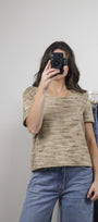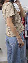 Size: Labeled L, suits L / Brand: Cleo / Condition: 9/10 (tiny hole under armpit) / Material: 97% Polyester, 3% spandex / Type: Vintage / Colours: Tan, beige