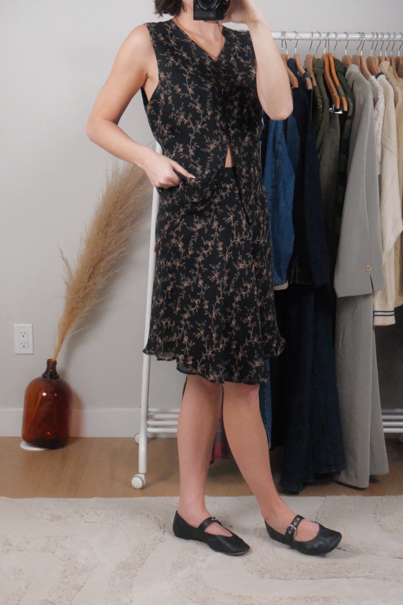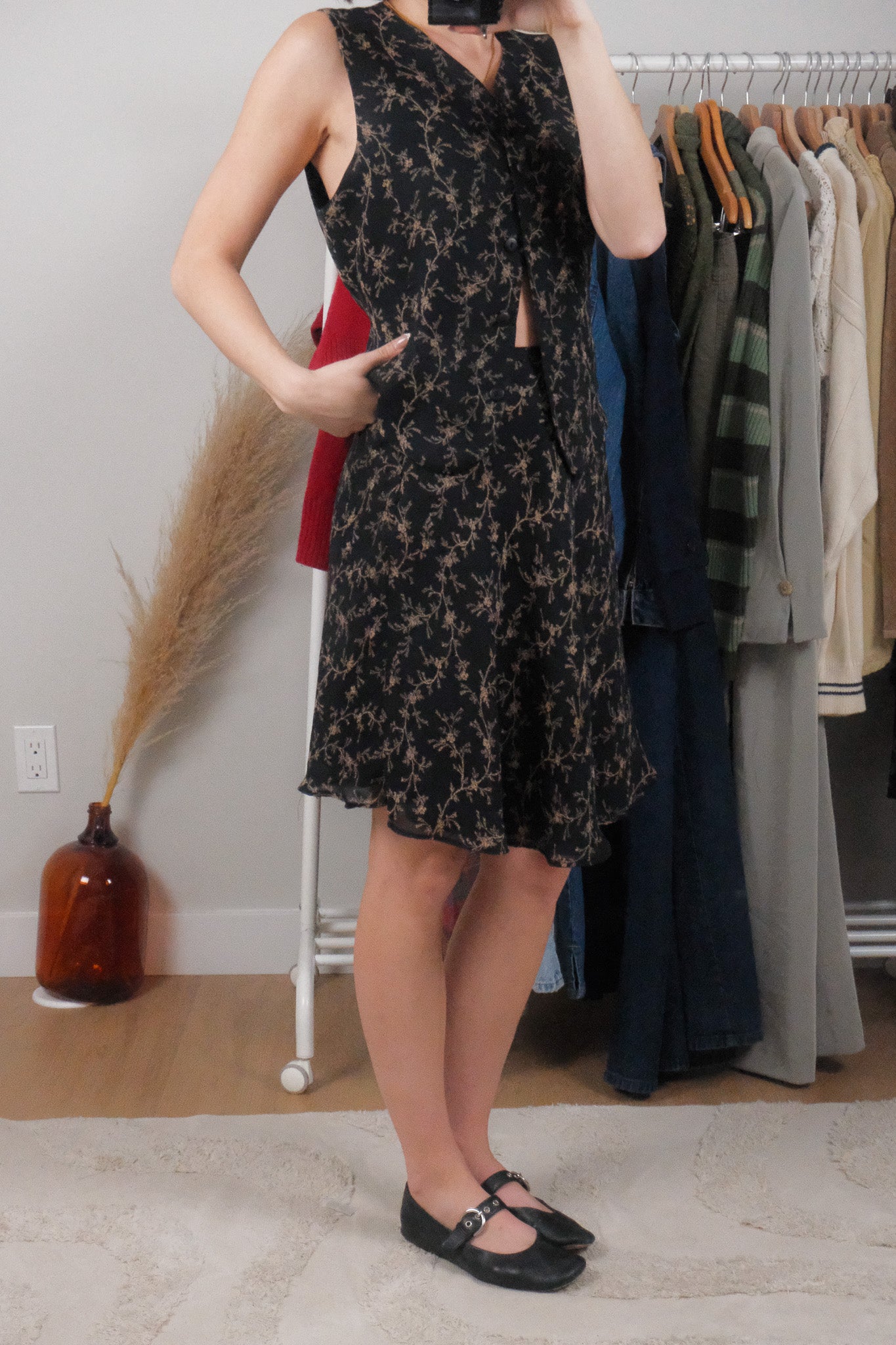 Measurements: Skirt - Waist - 26" (has additional stretch) - 22" / Length -46" Vest - Ptp - 20" / Length - 19"