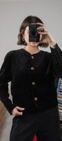 Size: Labeled 14, suits 10/12 / Brand: Eaton / Condition: 9/10 / Material: 65% acetate, 35% nylon / Type: Vintage / Colours: Black