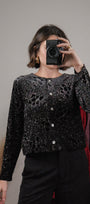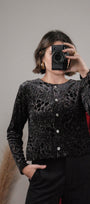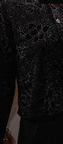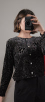 Made in Canada x Vintage x Velvet Floral Shimmer Cropped Cardigan (S)