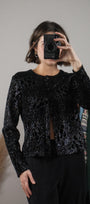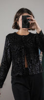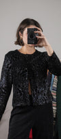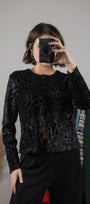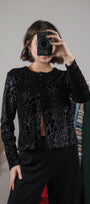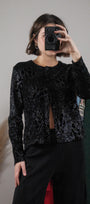 Made in Canada x Vintage x Velvet Floral Shimmer Cropped Cardigan (S)
