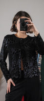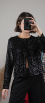 Size: Labeled S, suits S / Brand: moonlighting / Condition: 9/10 / Material: 90% polyester, 10% lycra / Type: Vintage / Colours: Black (colourful shimmer)