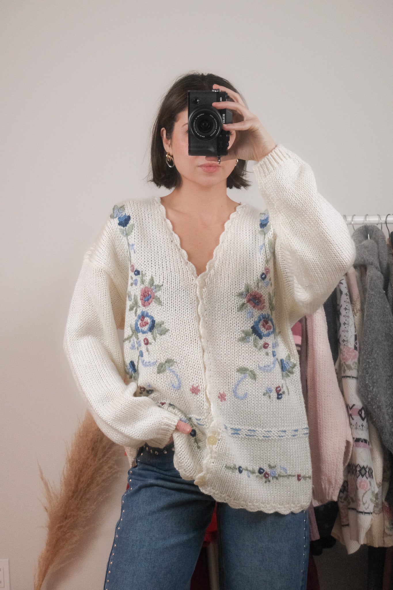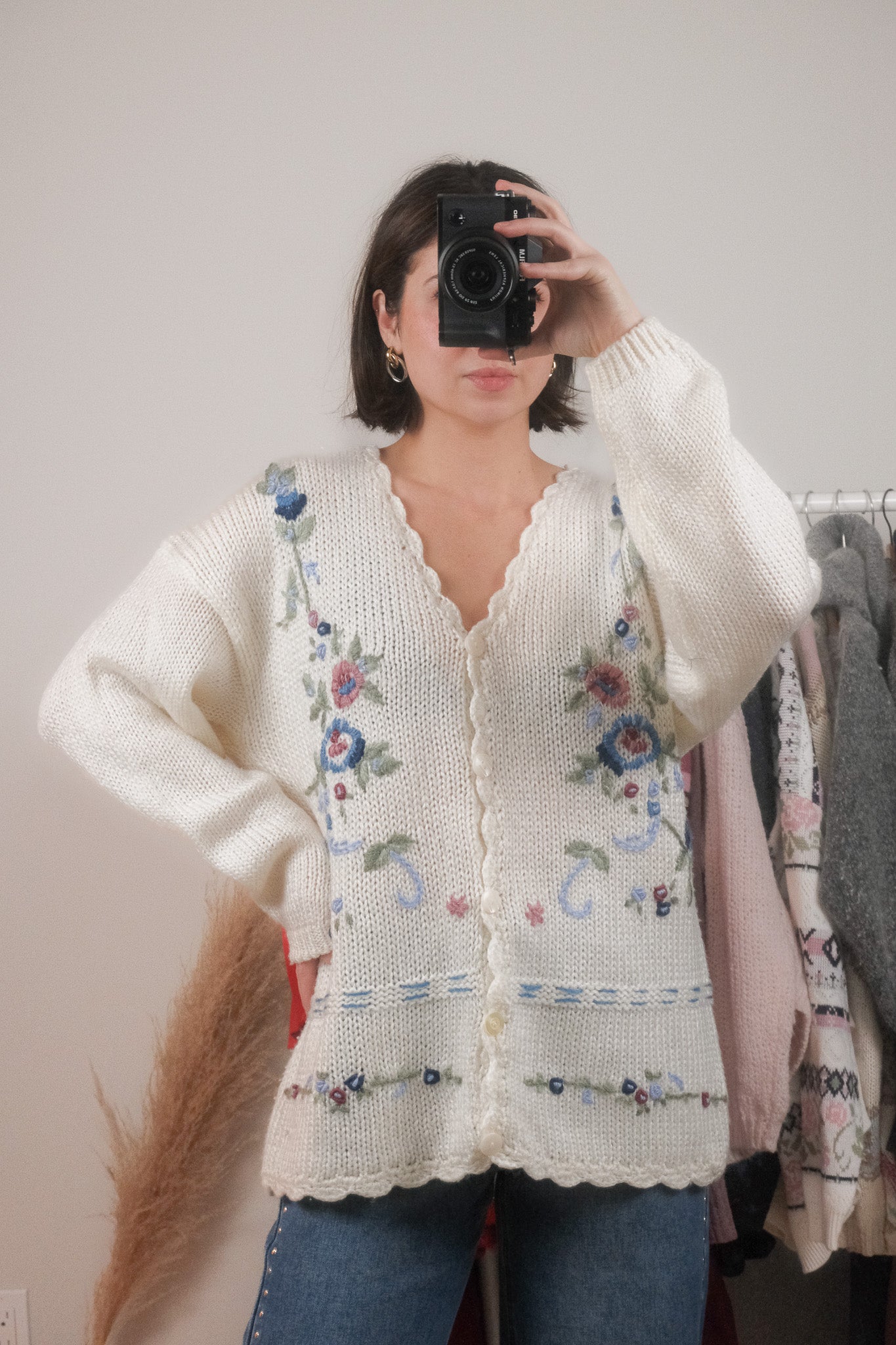 Made in Korea x Vintage x Flower Embroidered Knit (L)
