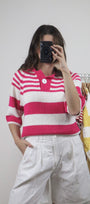 Made in Singapore x Vintage x Striped Short-Sleeve Knit (S/M)