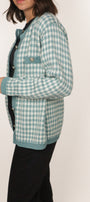 Size: S / Brand: Alfred Dunner / Condition: 8.5/10 (missing the bottom button, hardly noticable) / Material: 85% acrylic, 15% nylon / Type: Vintage / Colours: Teal & white