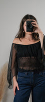 Made in USA x Vintage x Sheer Cropped Blouse (S)