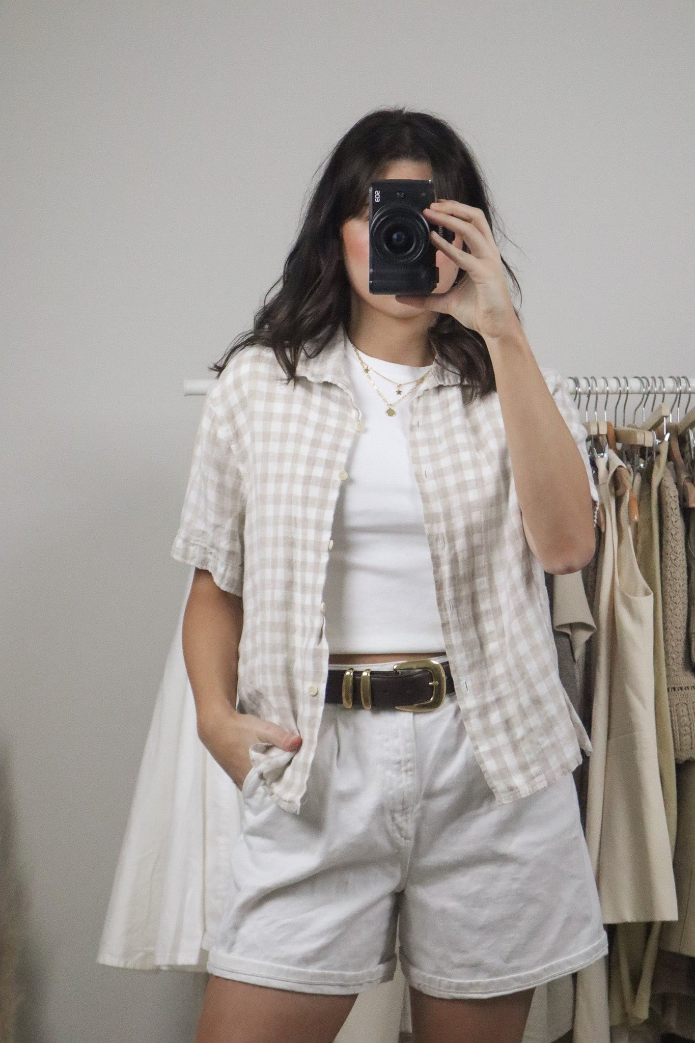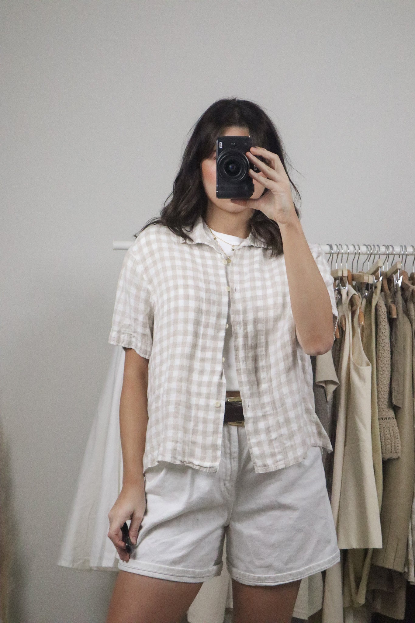 Size: Labeled OS, suits S-L / Brand: Oak + Fort / Condition: 8/10 (small stain on the back) / Material: 100% linen / Type: Modern / Colours: Tan