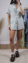 Size: Labeled UK12 (US8), suits 6/8 / Brand: Lola May / Condition: 9/10 / Material: Not listed, feels like polyester / Type: Vintage / Colours: Green, navy, white