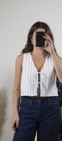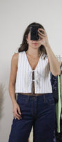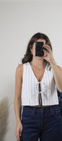 Modern x Tie Crinkle Striped Cropped Top (S)