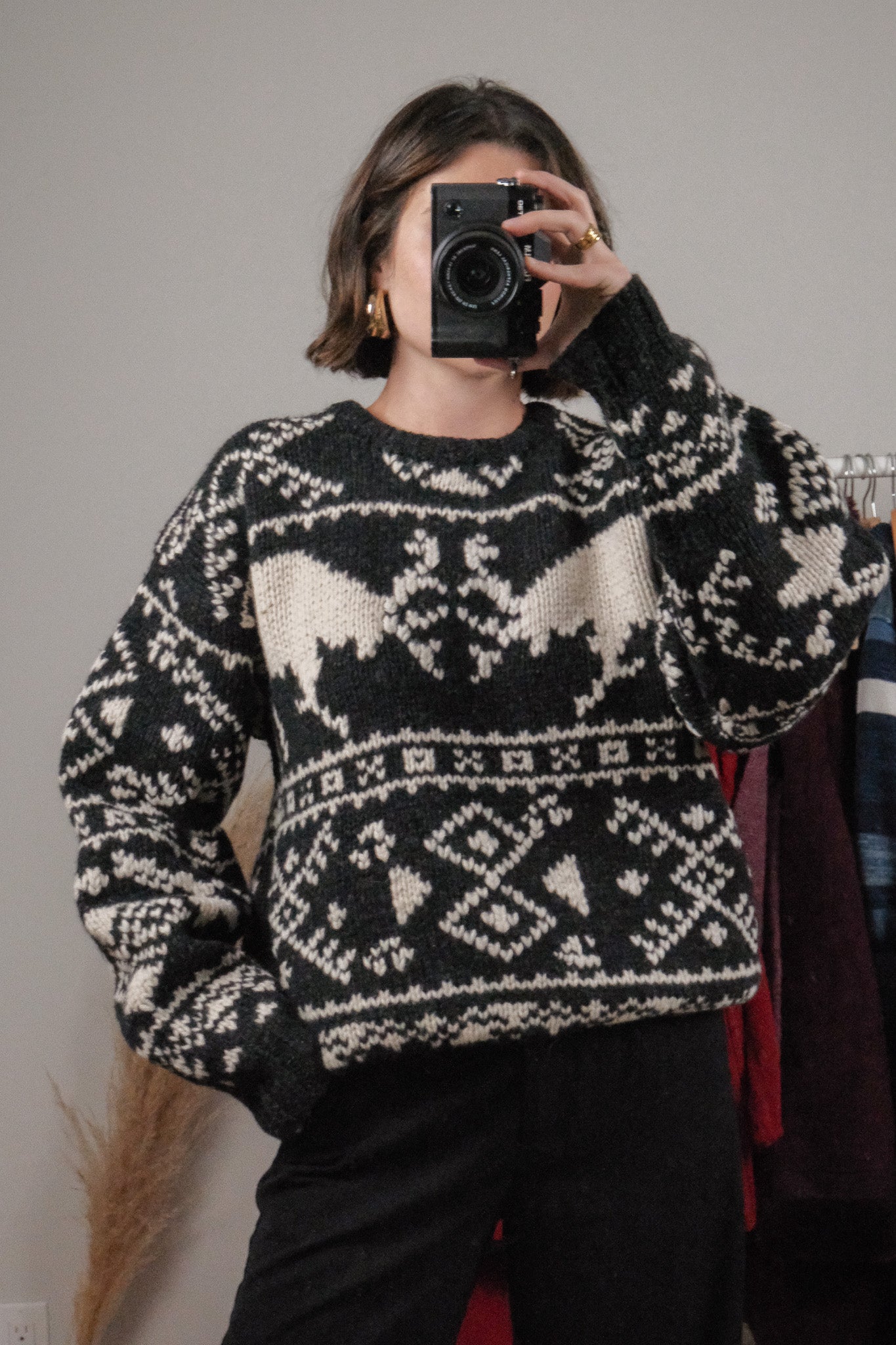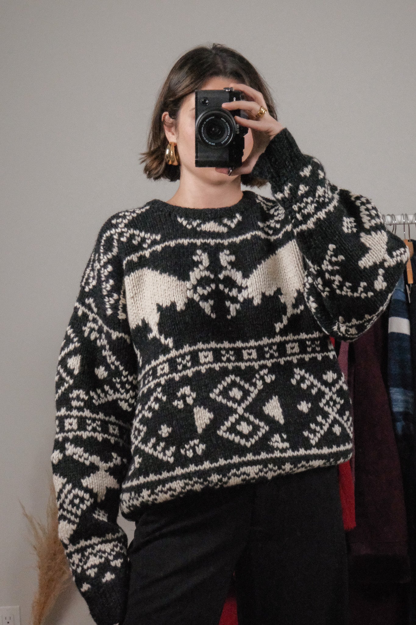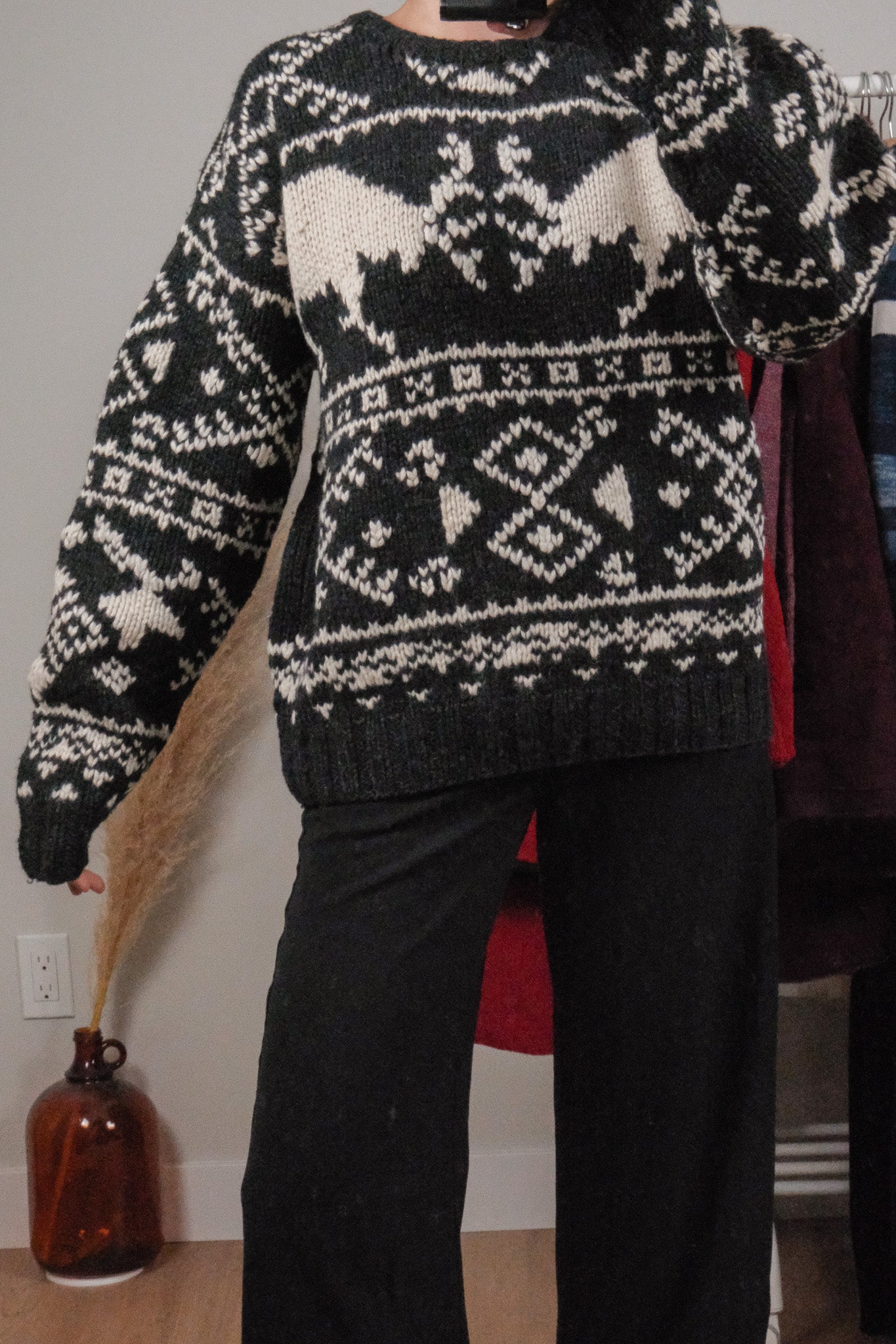 Vintage x 90s American Eagle Wool Chunky Deer Knit (M)