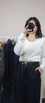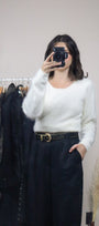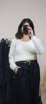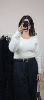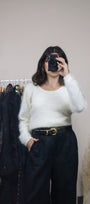 Size: Labeled M, suits S/M / Brand: Alibi / Condition: 9/10 / Material: 70% angora, 30% nylon / Type: Vintage / Colours: Cream