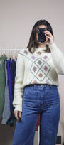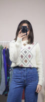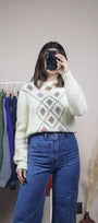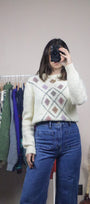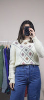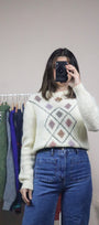 Size: Not labeled, suits XS / Brand: marella / Condition: 9/10 / Material: 100% acrylic / Type: Vintage / Colours: Cream, pink, grey