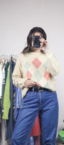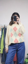 Size: Labeled L, suits M / Brand: Tabi International Golf / Condition: 9/10 / Material: 100% cotton / Type: Vintage / Colours: Butter Yellow, white, pink, green