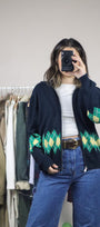 Size: Labeled L, suits M / Brand: Liz Claiborne / Condition: 9/10 / Material: 100% cotton / Type: Vintage / Colours: Navy, green, yellow