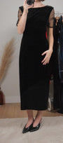 Vintage x Beaded Sleeve Velvet Midi Dress (10/12)
