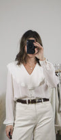Size: Not labeled, suits M / Brand: Jacques Vert / Condition: 8/10 (overall in good shape, has some snags, price reflects condition) / Material: 100% polyester / Type: Vintage / Colours: White
