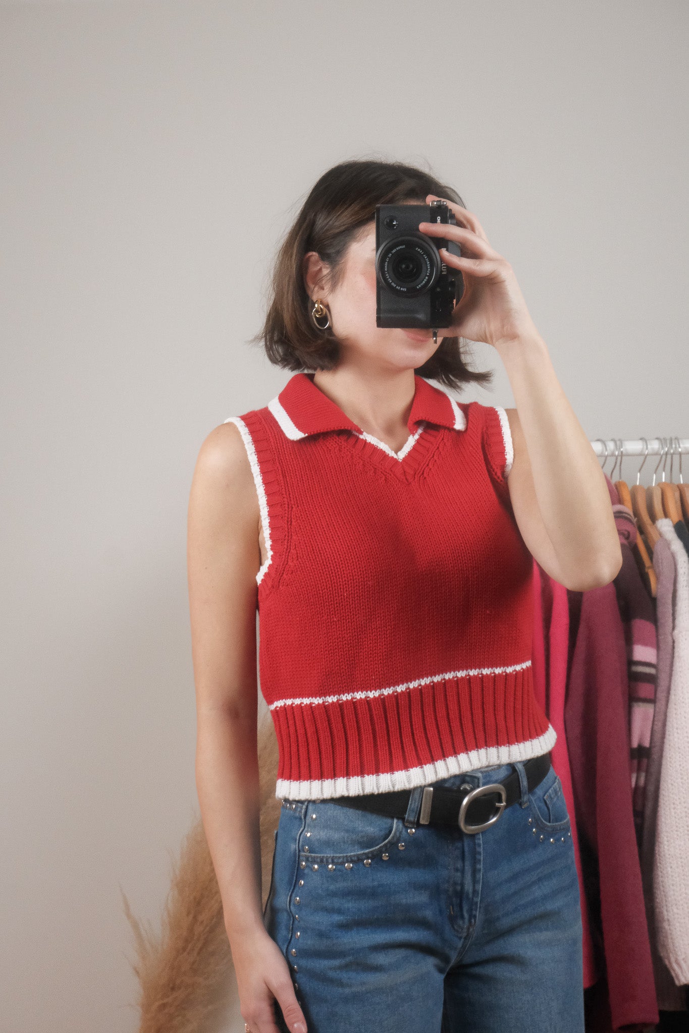 Size: Labeled M, suits M / Brand: Cleo / Condition: 9/10 / Material: 100% cotton / Type: Vintage / Colours: red
