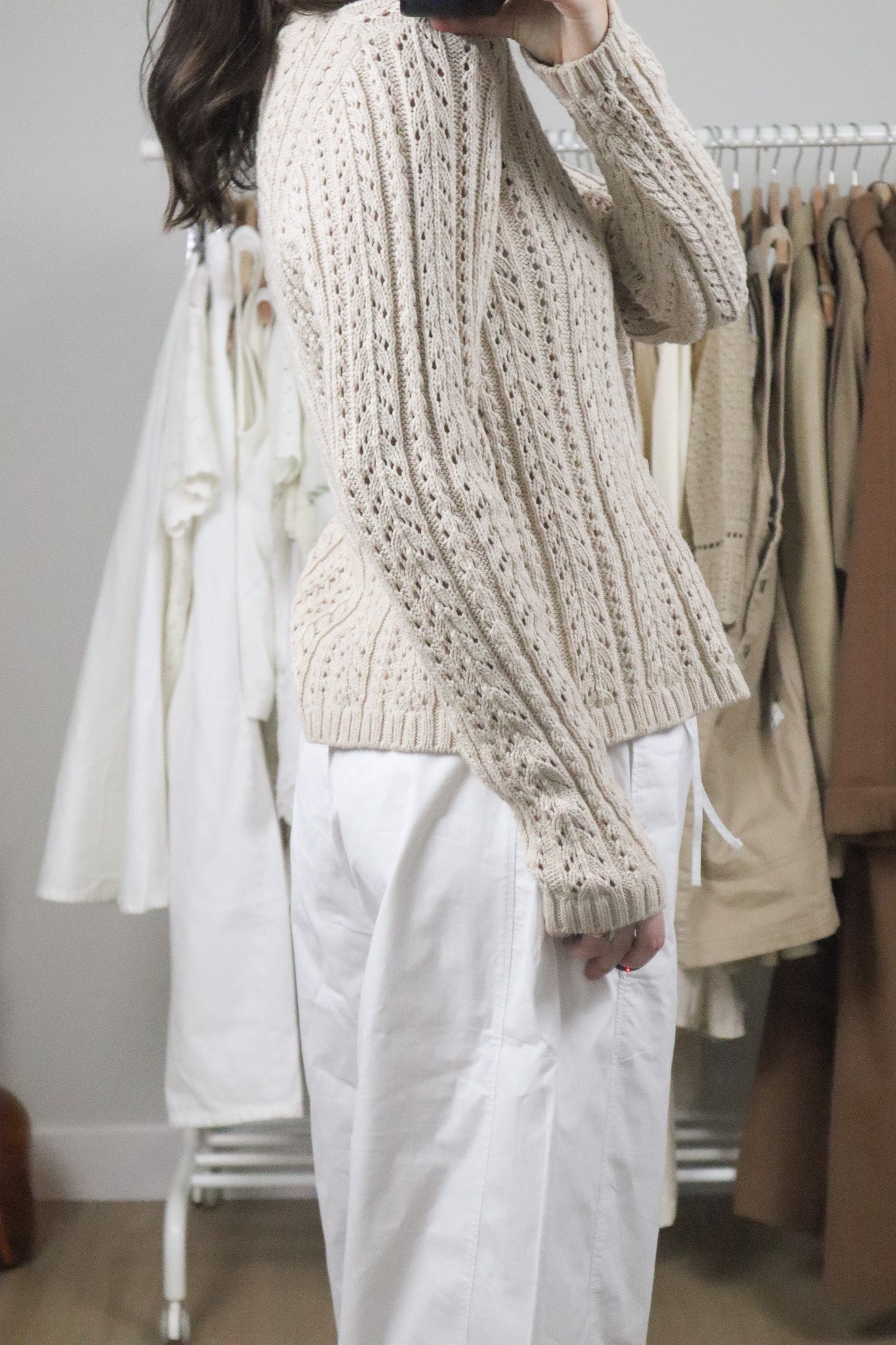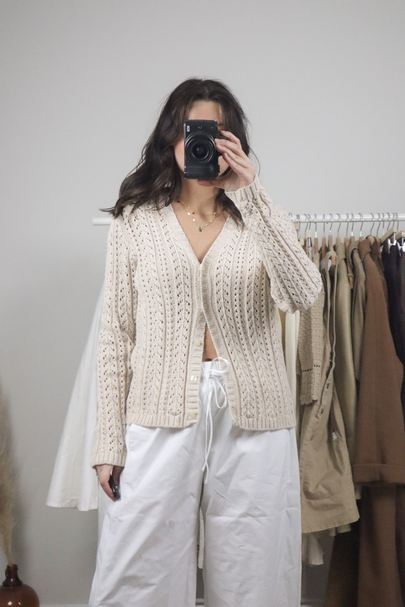 Size: Labeled XL, suits M-L / Brand: Eddie Bauer / Condition: 9/10 (small stain on the arm) / Material: 100% cotton / Type: Vintage / Colours: Cream
