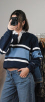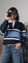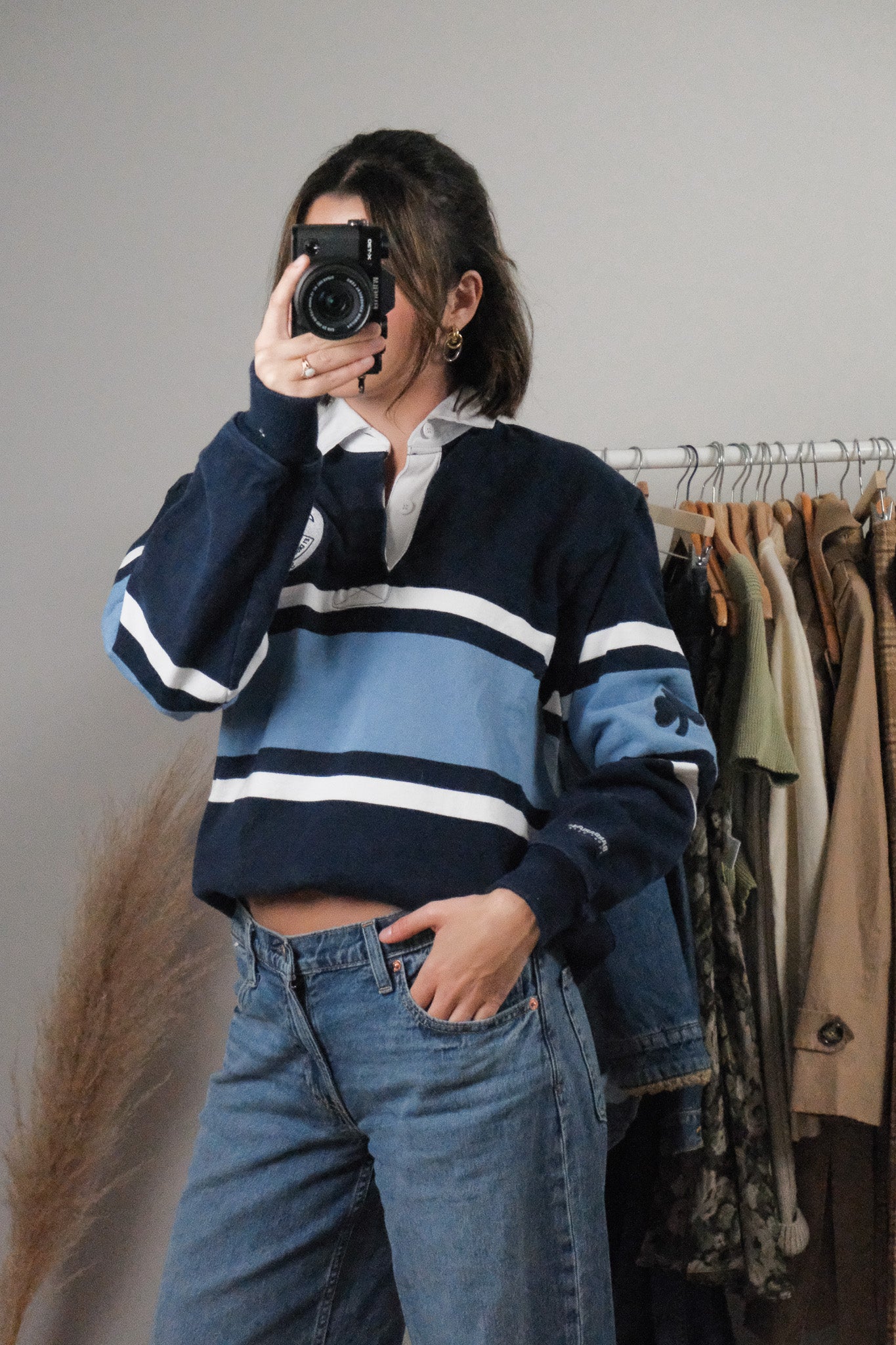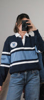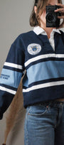 Size: Labeled M, suits M/L / Brand: Rugby Wear Barbarian / Condition: 9/10 / Material: 100% cotton / Type: Vintage / Colours: navy, blue, white