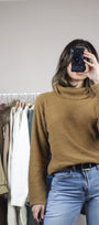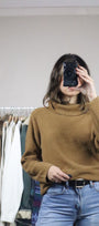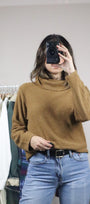 Size: Labeled M, suits S/M / Brand: Maggie / Condition: 9/10 / Material: 80% acrylic, 20% nylon / Type: Vintage / Colours: Brown (gold)