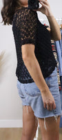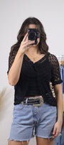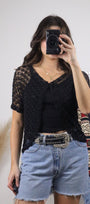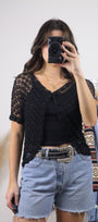 Vintage x Crochet Beaded Short-Sleeve Top (M)