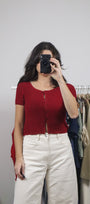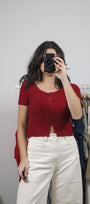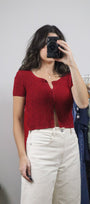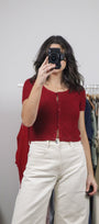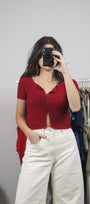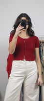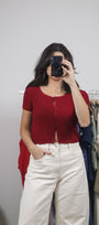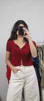 Size: Labeled L, suits S-M / Brand: Emma James / Condition: 8.5/10 (is missing a button, see last photo) / Material: 100% rayon / Type: Vintage / Colours: Red