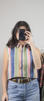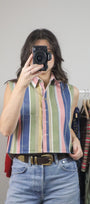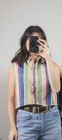 Vintage x Cotton Cropped Striped Button Tank (S/M)