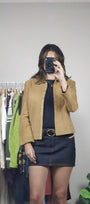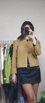 Size: Labeled 1/2, suits XXS/XS / Brand: Express / Condition: 8/10 (overall in great shape, has so slight wear on cuff of the sleeves, not noticeable when on) / Material: Shell - 100% genuine leather, lining - 50% nylon, 50% acetate / Type: Vintage / Colours: Tan