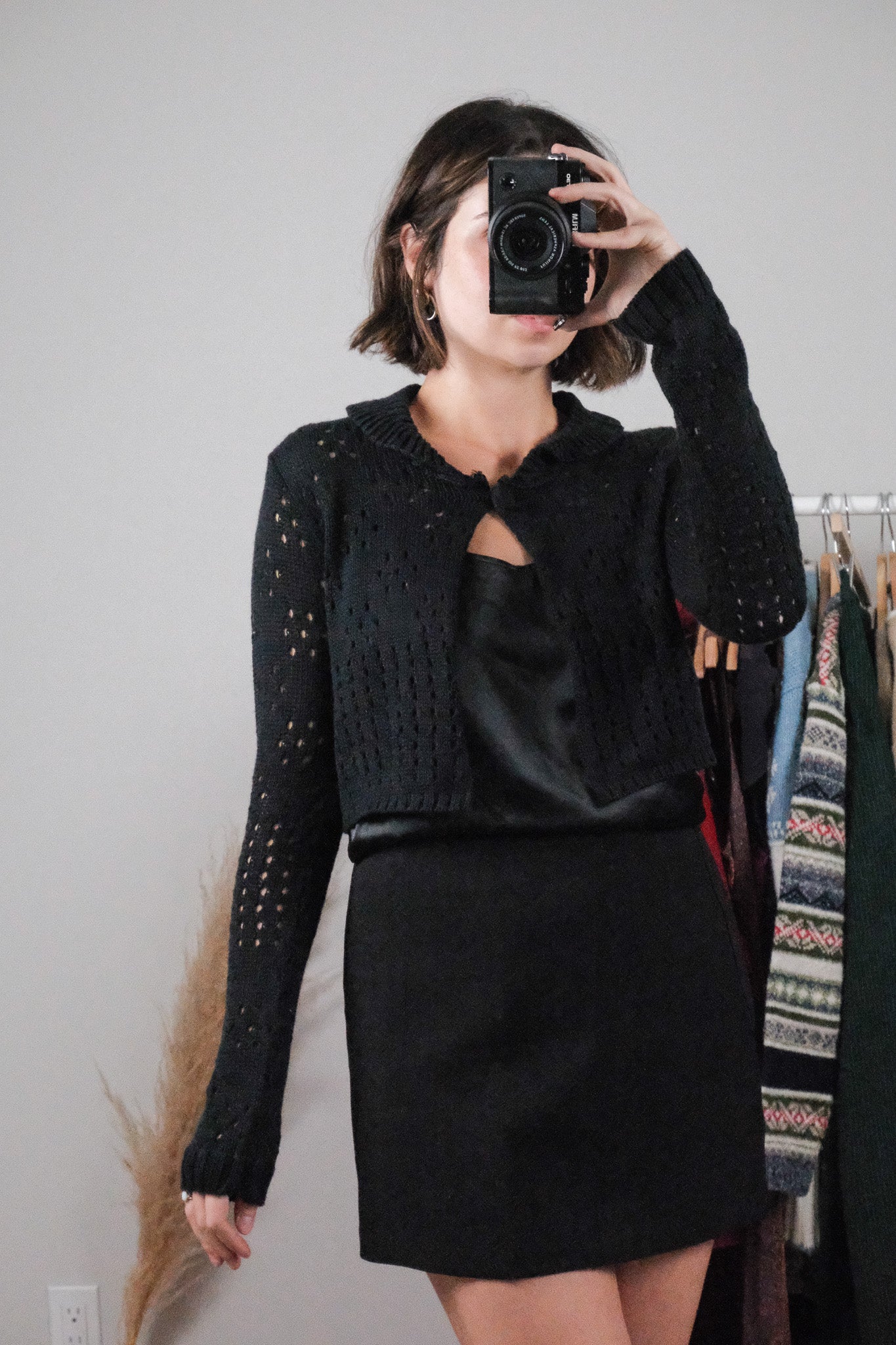 Size: Labeled S/M, suits M/ Brand: Nevada / Condition: 9/10 / Material: 55% acrylic, 45% cotton / Type: Vintage / Colours: Black
