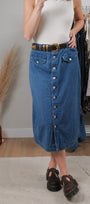 Size: Labeled 16, suits 12/14 / Brand: Northern Spirit / Condition: 9/10 / Material: 100% cotton / Type: Vintage / Colours: Denim