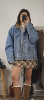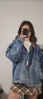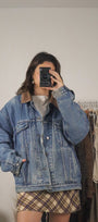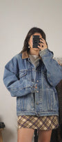 Size: Not abeled, suits L/XL / Brand: ID Wear / Condition: 9/10 (some slight vintage wear) / Material: Not listed, sherpa lined / Type: Vintage / Colours: Denim & Brown