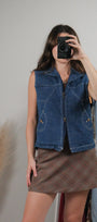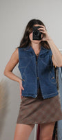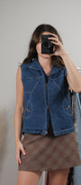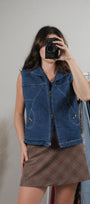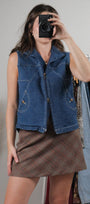 Vintage x Double Zipper Denim Vest (M)