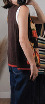 Size: Labeled M, suits M / Brand: Tiara / Condition: 9/10 / Material: 55% ramie, 45% cotton / Type: Vintage / Colours: Brown, orange, green, yellow,