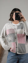 Size: Labeled S, suits S / Brand: Northern Reflections / Condition: 9/10 / Material: 60% acrylic, 40% cotton/ Type: Vintage / Colours: Grey, pink, cream
