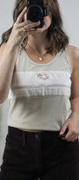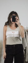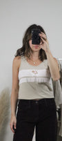 Size: Labeled M, suits M / Brand: Lady Footlocker / Condition: 9/10 / Materials: 65% polyester, 35% cotton / Type: Vintage / Colours: beige, white