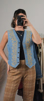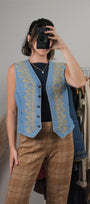 Size: Labeled M, suits M / Brand: Lizwear / Condition: 9/10 (slight wear) / Material: 100% cotton / Type: Vintage / Colours: Denim, gold
