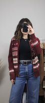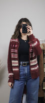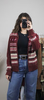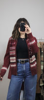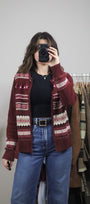 Size: Labeled S, suits S / Brand: Northern Reflections / Condition: 9/10 / Material: 60% cotton, 40% acrylic / Type: Vintage / Colours: Maroon, cream, green, pink