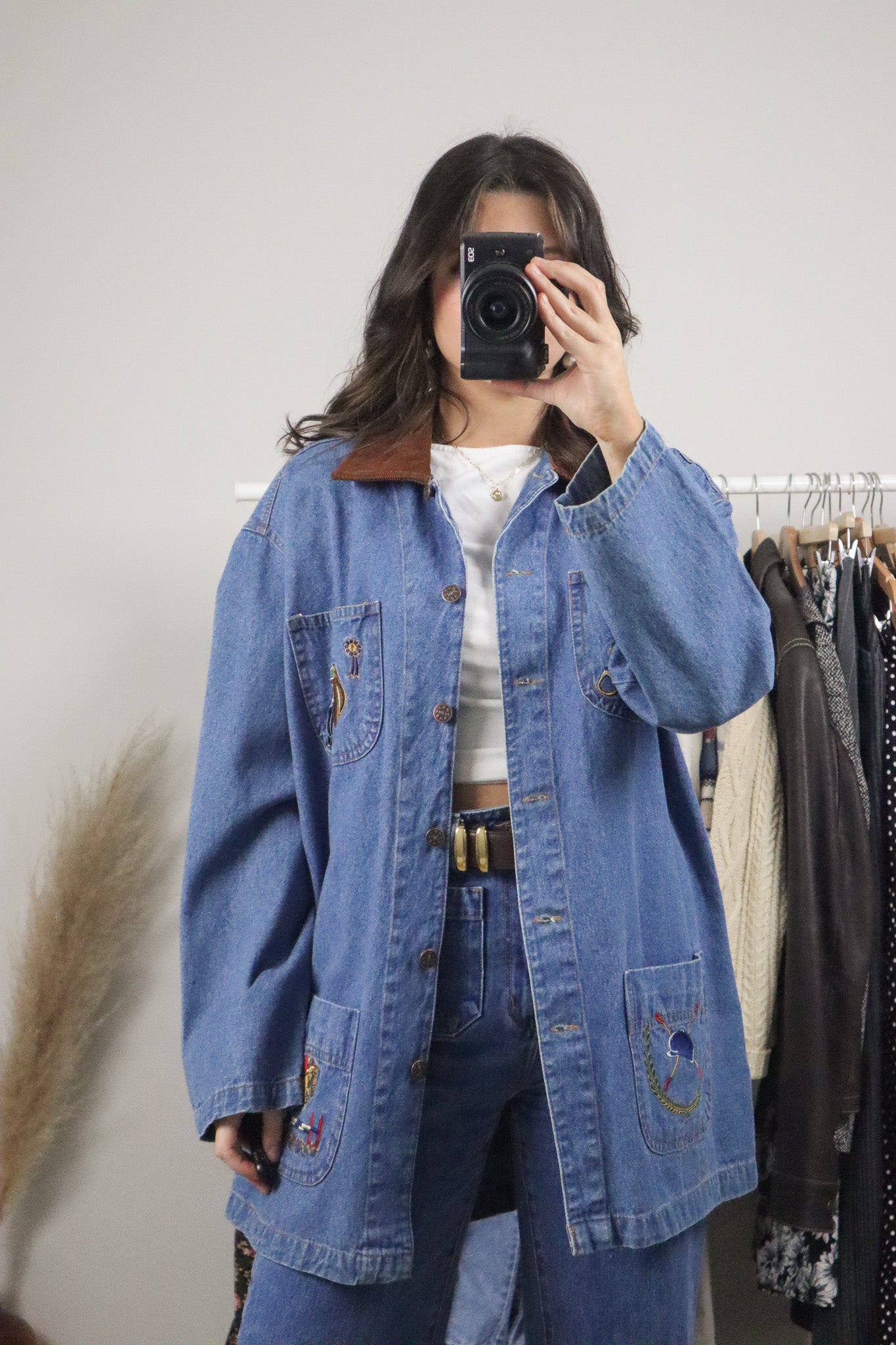 Size: Labeled ML, suits M/L / Brand: casey coleman / Condition: 9/10 / Material: 100% cotton / Type: Vintage / Colours: Denim, brown