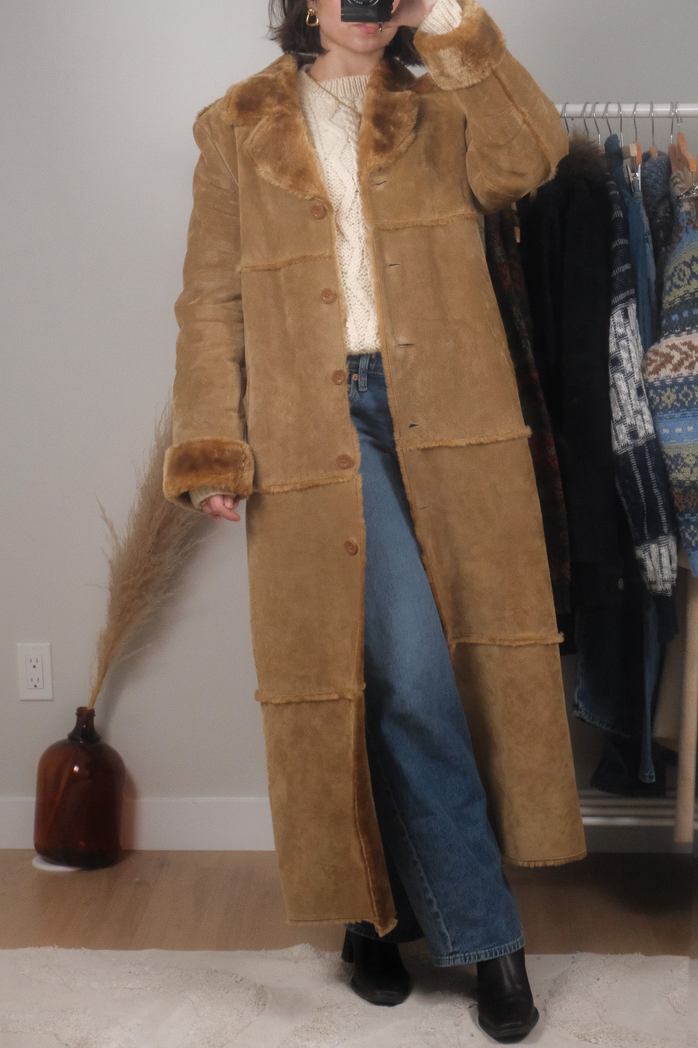 Vintage x Faux Fur Trim Genuine Suede Heavy Coat (M)