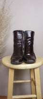 Size: Labeled 6, suits 6 / Brand: Franco Sarto / Condition: 8/10 (has signs of wear on inside of boots, not visible when on) / Material: Faux Leather / Type: Vintage / Colours: Brown