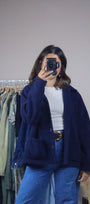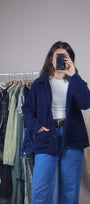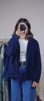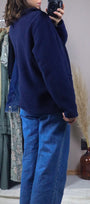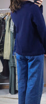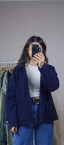 Size: Labeled L, suits M/L / Brand: east-west / Condition: 8.5/10 (has some vintage wear)/ Material: 100% polyester / Type: Vintage / Colours: Navy Blue