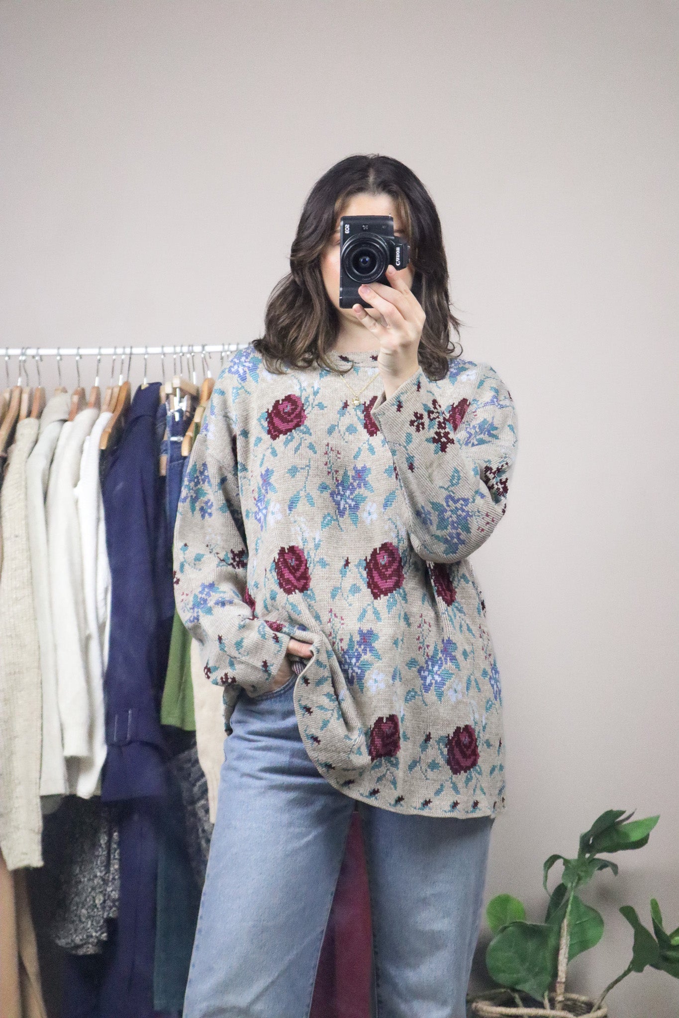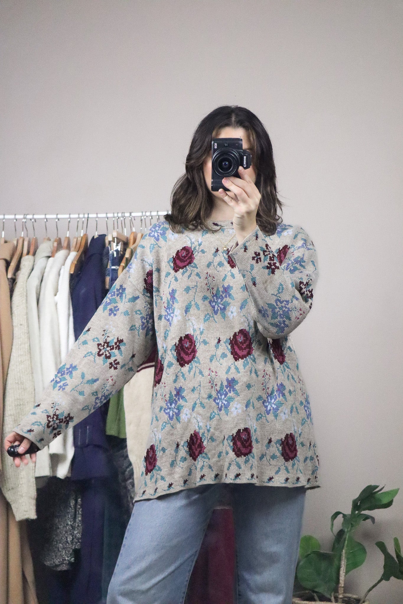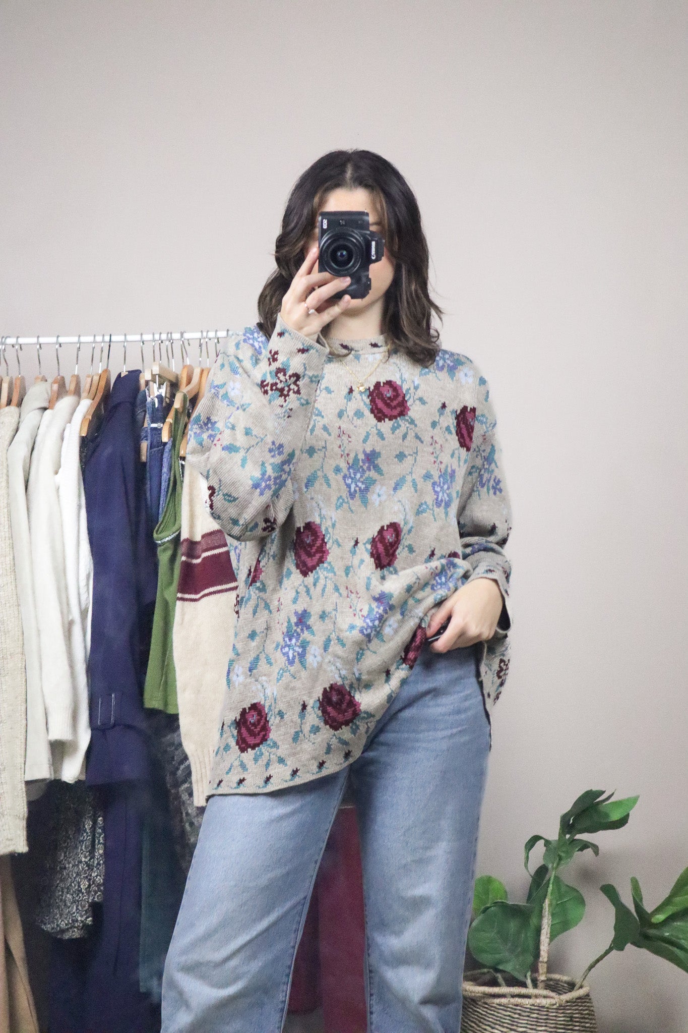 Size: Not labeled, suits L / Brand: Grace / Condition: 9/10 / Material: tag cute out / Type: Vintage / Colours: Taupe, maroon, pink, teal, blue