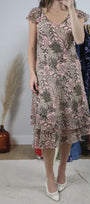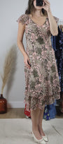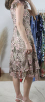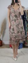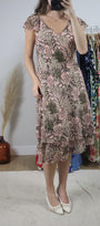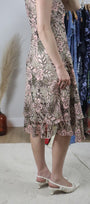 Size: Labeled 8, suits 8 / Brand: Cleo / Condition: 9/10 (slight wear on lining, not visible) / Material: Not labeled/ Type: Vintage / Colours: Brown, pink, gold