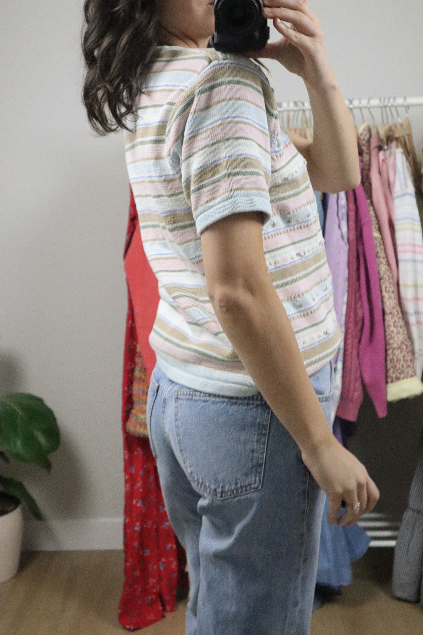 Size: Labeled M, suits M / Brand: Northern Reflections / Condition: 9/10 / Material: 100% cotton / Type: Vintage / Colours: Blue, pink, green, beige, white