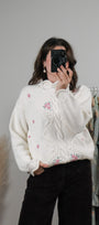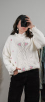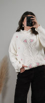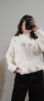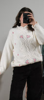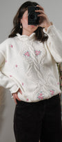 Vintage x Hand Knit Floral Chunky Knit Sweater (S/M)