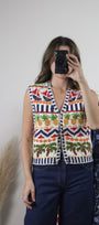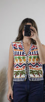 Size: Labeled L, suits M / Brand: Knitting Needles / Condition: 9/10 (slight wear) / Materials: 55% ramie, 45% cotton / Type: Vintage / Colours: White, yellow, purple, brown, green, teal, pink, red, navy, orange