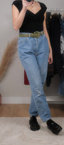 Size: Labeled 11, suits 6/8 / Brand: Jordache / Condition: 9/10 / Material: 100% cotton / Type: Vintage / Colour: Denim