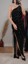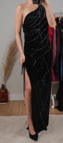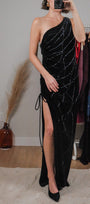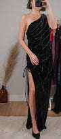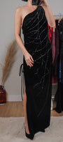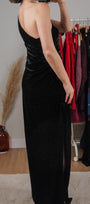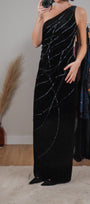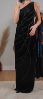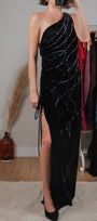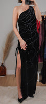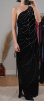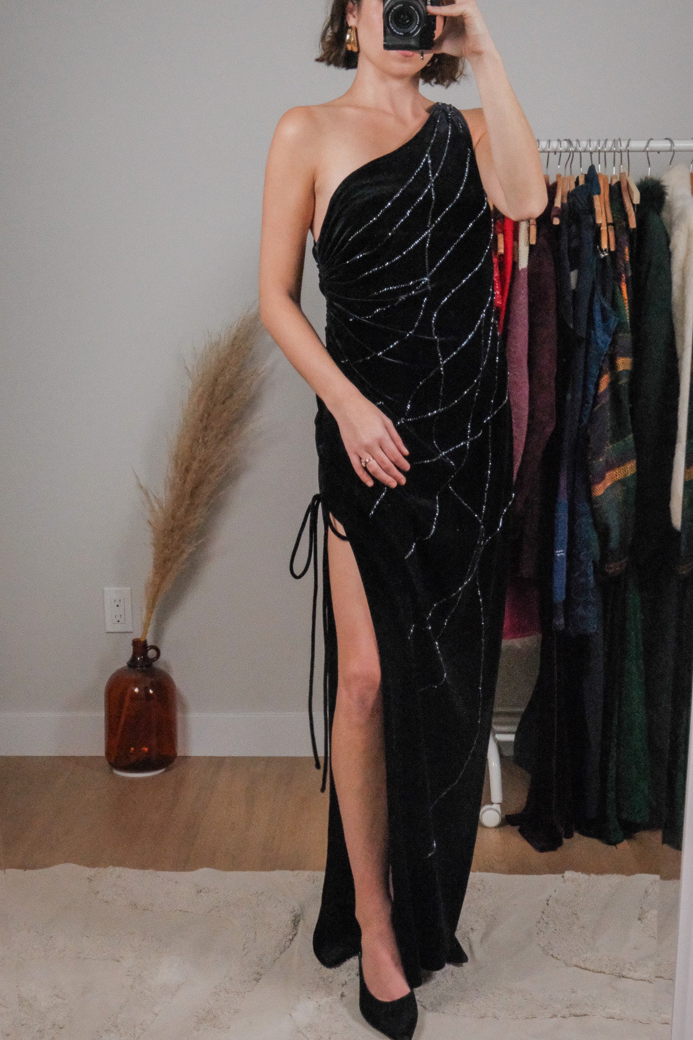 Vintage x One Shoulder Beaded Chinched Maxi Dress (M)
