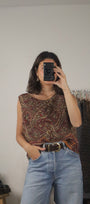 Size: Labeled L, suits L / Brand: Jessica / Condition: 9/10 / Material: 100% rayon (lining 100% polyester) / Type: Vintage / Colours: Red, green, cream, orange