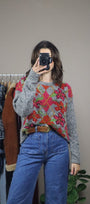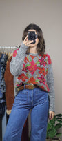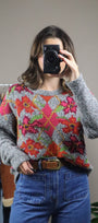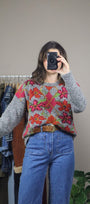 Size: Labeled S, suits S / Brand: Daniel Hechter / Condition: 9/10 / Material: 55% acrylic, 35% cotton, 5% wool / Type: Vintage / Colours: Grey, orange, pink, green red, gold